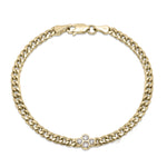An embodiment of refined sophistication, this flower chain bracelet presents Levana's exclusive bezel flower design adorned with natural diamonds in 14k yellow gold. The substantial 3.60mm chain ensures lasting durability and presence, while the graceful 6.5" length epitomizes understated opulence. A coveted piece for the discerning collector.