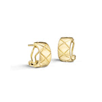 These criss cross hoops feature an embedded design that blends elegance with everyday practicality. Dipped in a durable .3-micron layer of gold, they offer long-lasting wear and resistance to tarnishing. Perfectly crafted for daily use, these hoops combine refined style with expert durability.