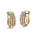 This diamond earring showcases a unique moon-shaped hoop featuring a sophisticated mix of embedded rectangular and round diamonds. Combining modern design elements with vintage elegance, this piece offers a refined balance of geometric precision and timeless charm, perfect for those seeking a distinctive yet classic accessory.